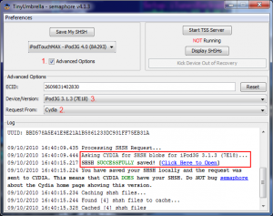 1. Выбираем Advance Options 2. Выбираем Cydia 3. Выбираем интересующую вас прошивку 4. Нажимаем Save My SHSH и ждем, если в логе увидим строчку SHSH SUCCESSFULLY, то SHSH от выбранной прошивки был сохранен и вы можете на нее вернуться, таким образом можете перебрать все прошивки. Сохраненные на вашем компьютере shsh можно увидеть, нажав «Display SHSHs»