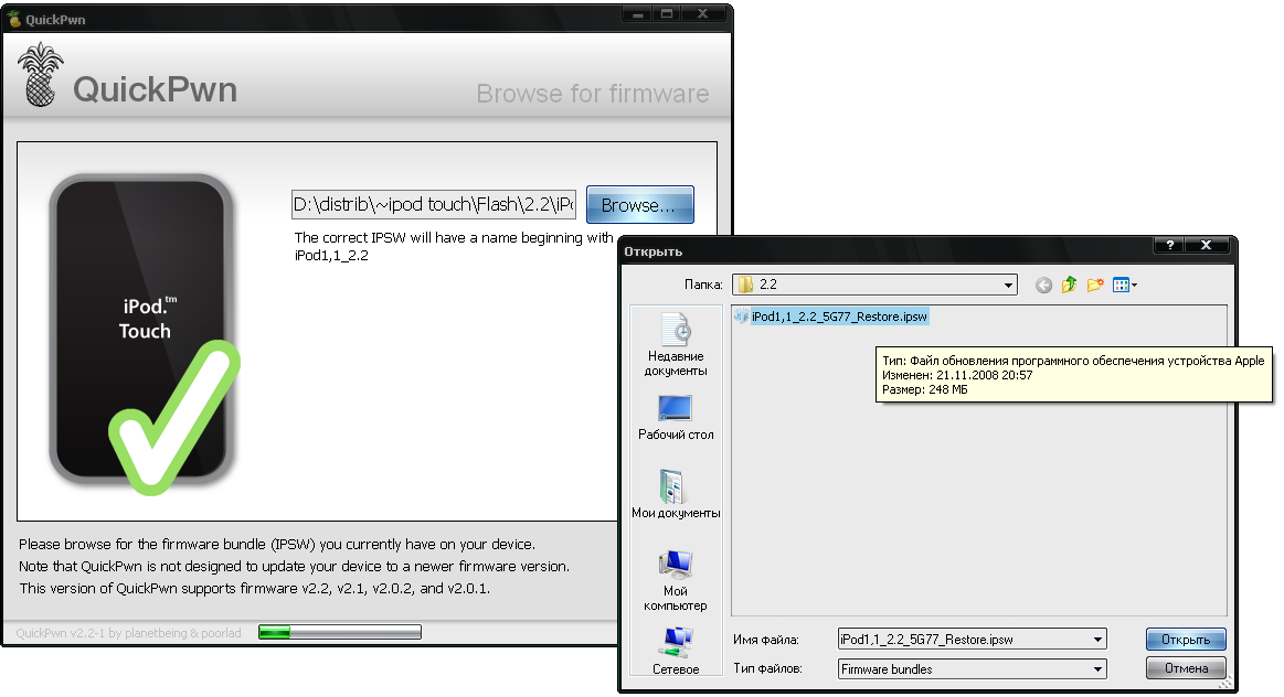 Внимание! Плееры iPod Touch 2G до сих пор не поддерживаются (ни прошивка 2.1.1, ни прошивка 2.2)!