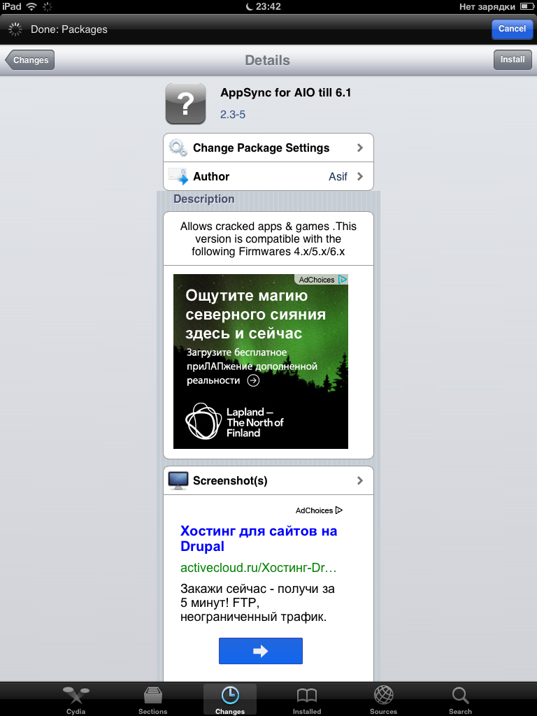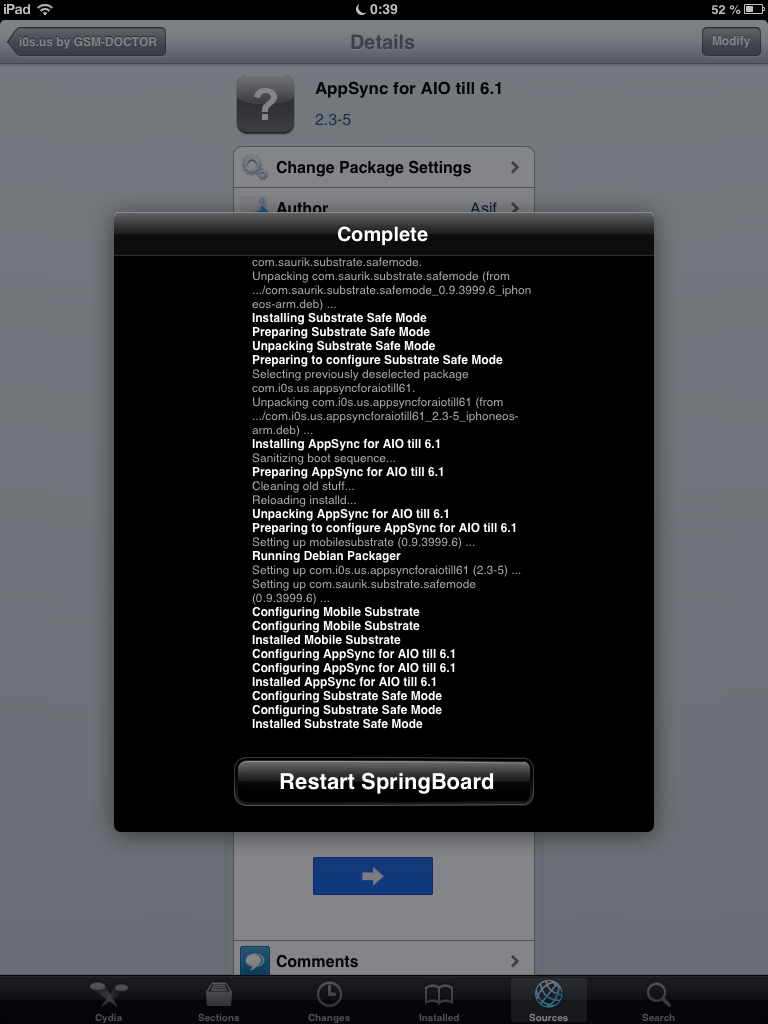 Для возможности ставить взломанные IPA файлы необходимо поставить AppSync 5.0+ (AppSync iOS 6.1), но так как Hackulous перестал существовать, придется использовать альтернативные репозитарии, например или скачать архив AppSync и поставить deb файлы com.chpwn.weeloader_1.2-1_iphoneos-arm.deb и com.myrepospace.smolk.appsync6_2.2_iphoneos-arm.deb вручную (способ работает даже когда Cydia перегружена)