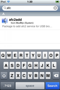 Выбираем Search и набираем там afc2add это сервис, который позволяет получить полный доступ к файловой системе через i-funbox, Устанавливаем его. Перезапускаем плеер