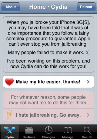 Запускаем Cydia и нажимаем на Make my life easier, thanks!