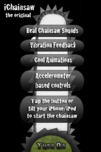 iChainsaw, это первый эмулятор бензопилы на iPod Touch/iPhone. Просто представьте, что вы сможете сделать с миниатюрной бензопилой!