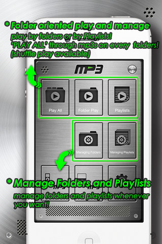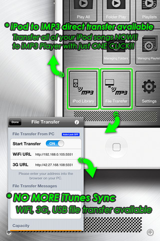 Оно получило название iMP3 Pro и является абсолютно независимым проигрывателем. Поясню, что это значит. В App Store довольно много разнообразных проигрывателей, но на деле они ничто иное как альтернативная графическая оболочка, использующая загруженную через iTunes музыку. Данная же программа позволяет загружать музыку так, в обход iTunes, а затем проигрывать её, например, по папкам.