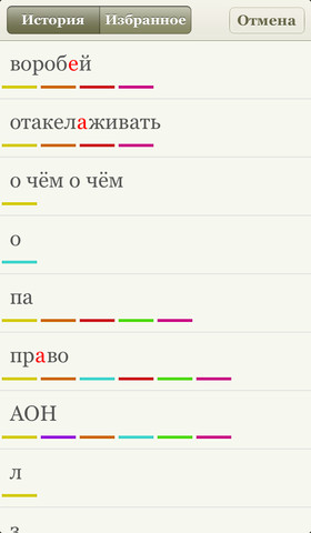 Любое слово можно добавить в избранное или отправить друзьям по почте. Стрелки в нижней панели позволяют быстро перейти к словам, которые Вы искали раньше. В настройках есть функция для выбора оптимального размера текста, а помимо русских слов поддерживаются и английские. Чтобы не настраивать заново словари и прочие данные на другом устройстве, можно создать резервную копию в облачном сервисе iCloud, а после быстро восстановиться.