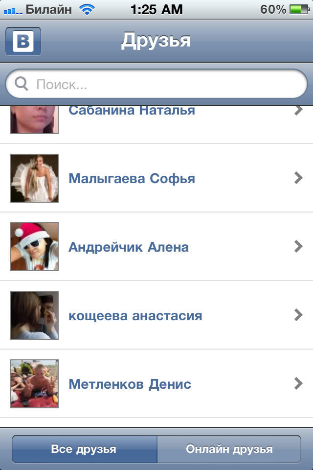 Эта функция выводит список всех ваших друзей, или только тех, кто сейчас находится на сайте. Здесь так же организован удобный поиск, в который можно ввести часть имени вашего друга и мгновенно перейти на его профиль. Оставшиеся вкладки «Фотографии», «Музыка» и «Видеозаписи» позволяют вам мгновенно перейти к соответствующему пункту вашего профиля.
