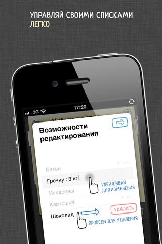 И немного от себя. Программа очень удобная, позволяет быстро пробежаться по магазину в поисках нужной вещи, удобно оформить списки, а синхронизация вообще шикарна. Приложение стоит $1.99 (тут можно немного поворчать, что идеальная цена ему $0.99), но в эти выходные оно бесплатно. Советую всем его скачать, оно реально помогает.