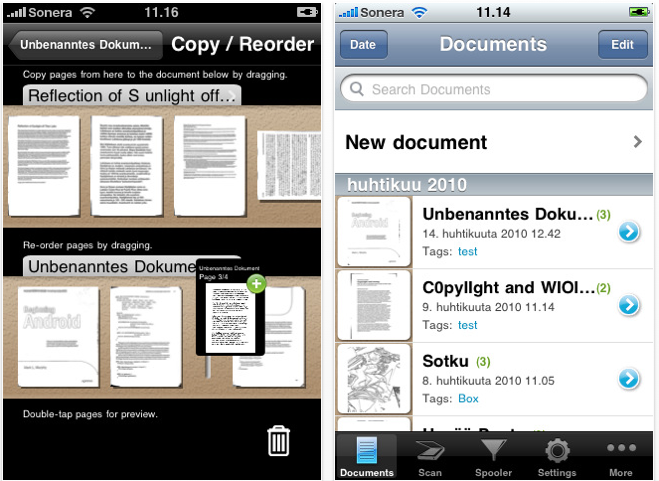 DocScaner (4.99$) — неплохой сканер текстовых документов. Позволяет создавать высококачественные многостраничные файлы PDF с последующим сохранением файлов на PC по Wi-Fi или отправкой на почтовый ящик. Основные возможности: распознавание текста, автоматическое определение углов, поддержка форматов PDF и JPEG, автоматическая подстройка яркости и контрастности, интеграция с почтовыми приложениями и так далее.