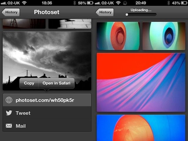 Самый простой и быстрый, не требующий регистрации метод закинуть свои фотоснимки с iPhone в интернет, который я когда-либо встречал – это Photoset. Яркое и надежное творение от Tumblr.
