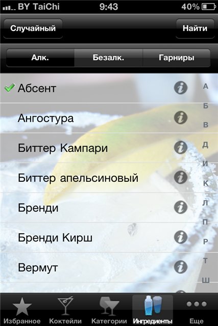 * Рецепты классических коктейлей и не очень (типа Абрикосовой бомбы или Берлинской стены)