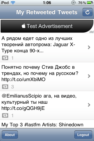 - Непонятная работа iAd. Она то есть, то её нет. При этом нет возможности избавиться от неё, например, с помощью IAP.
