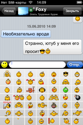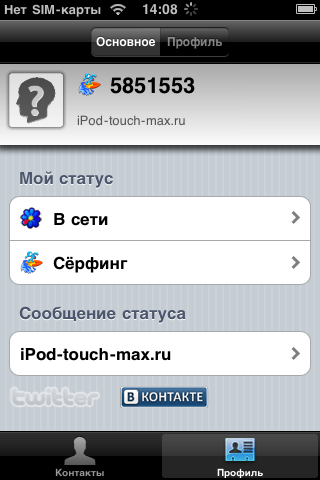 Новое приложение от русского разработчика под никнеймом XAOC, что отличает этот ICQ-клиент от других ему подобных (AIM, IM+ Beejive)? Это поддержка расширенных и основных статусов, просмотр версии клиента контакта, просмотр профиля. Совсе недавно автор добавил поддержку колобков и сделал свой проект полностью бесплатным. Так же в скором времени будет добавлена поддержка Push, ускорена работа клиента и другие вкусности.