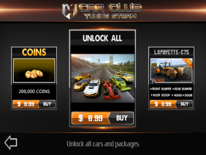 Меню настроек не претерпело никаких изменений, чего нельзя сказать о многих других игровых составляющих. Например появилась система монетизации, что очень негативно сказалось на отзывах пользователей. Теперь, помимо самого интересного контента, который можно было получить только за реальные деньги, вам необходимо зарабатывать виртуальную валюту, чтобы покупать новые автомобили и производить апгрейд деталей. Это делает геймплей более интересным, но в тоже время явно принуждает игроков опустошать свои кредитные карты.