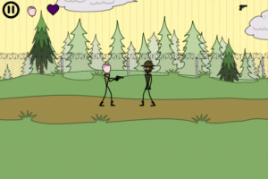 Увы, в самом конце звучит тревога и вы вместе с вашим сержантом отправляетесь в бой. После нескольких шагов Дрилла размажет по экрану и дальше вы последуете уже один, один на один со смертью, кучей врагов и препятствий. Но не стоит унывать, в подмогу вам выдаётся новое оружие, боеприпасы и конечно здоровье, которые вываливаются из поверженных вами врагов.