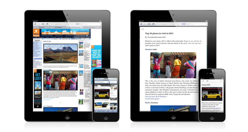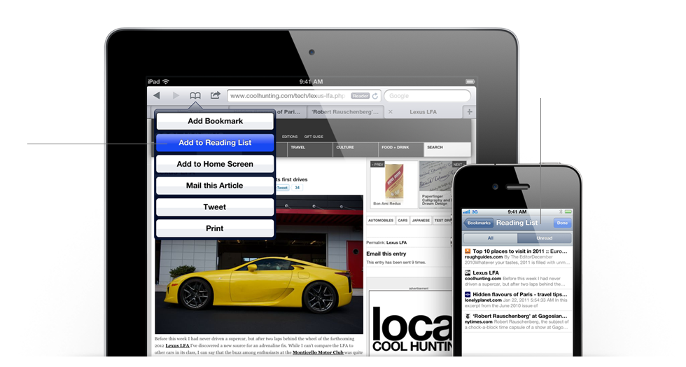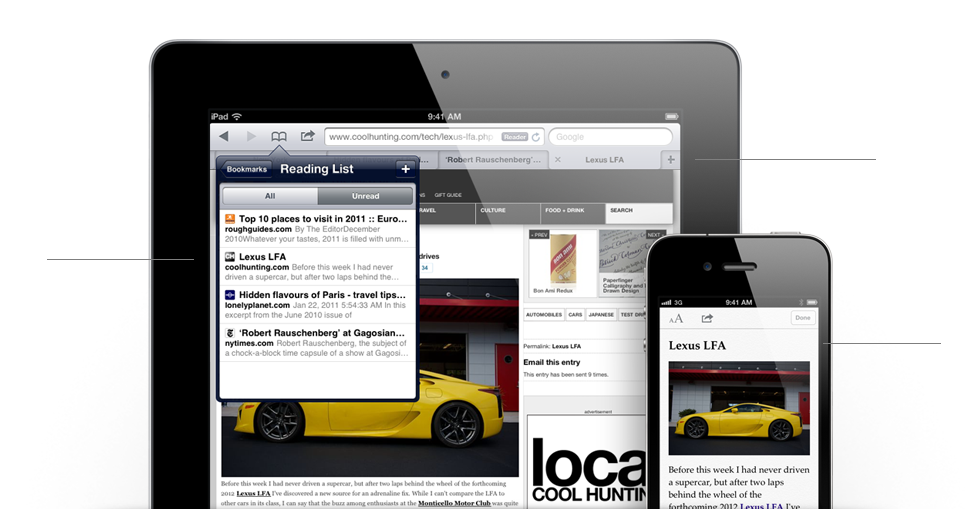Safari Reader — расширение, перкеочевавшее с настольной версии в мобильную, которое выделит только статью для более удобного чтения, кроме того ты теперь можешь откладывать для прочтения страницы, чтобы позже к ним вернуться.