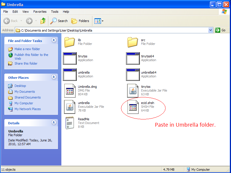 копируем ecid.shsh в папку Umbrella