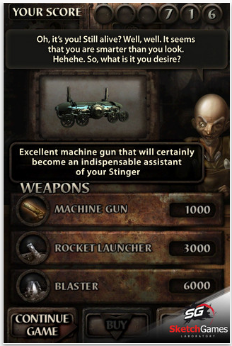 — магазин мистера Аркано, где вы сможете модернизировать «Стингера»;