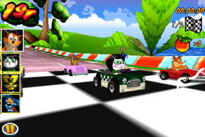 В игре вам предстоит гонятся на картах, что очень даже забавно. Игра черезвычайно веселая в основном благодаря наличию разных бонусов (ракет, бомб, щитов, динамита, и т.д.), таже сушествуют несколько игровых режимов: Quick race (быстрая гонка, состоящая из одной трасы, если надо скоротать 5 мин), Cup (набор трас и в конце подсчитываются ваши места), Story (вам предстоит выполнять задания). Управление в игре исключительно акселерометром (надо наклонять плеер).
