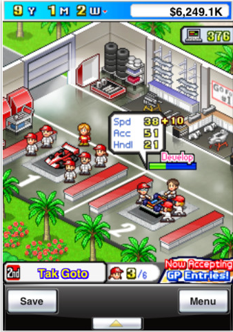 В Grand Prix Story вам предстоит почувствовать себя менеджером гоночной команды. Вам необходимо собрать себе команду, найти спонсоров, а так же заняться производством собственных авто для своих участников. Закупайте детали, обустраивайте свою команду, грамотно распорядитесь бюджетом и приведите своих гонщиков к победе. Игра выполнена в стиле ретро, классическая пиксельная графика идет очень даже на пользу.
