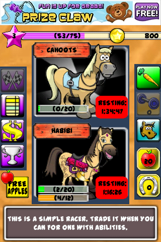 Horse Frenzy (4.99$) [Sale for All Devices] — забавные аркадные скачки на лошадях. Вам необходимо выбрать лошадь и привести ее к финишу первой. Так как это аркада, то вести лошадь придется весьма интересным способом. Вам дается мячик и несколько лунок разного цвета. Пинайте мячик в лунку и чем дальше она находится, тем быстрее лошадь побежит. Компьютерные соперники точно так же не дремлют и пытаются вас обогнать. Приведите свою лошадь первой к финишу и заработайте золотые монеты, которые можно тратить на прокачку скиллов и покупку других лошадей. Самое противное, что в игре за такие деньги присутствует реклама.