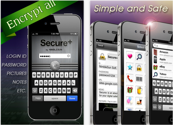 Secure+ Password Manager (0.99$) — неплохой менеджер паролей. Поддерживаются следующие функциц: запуск по паролью, интеграция с Safari, AES шифрование, синхронизация с iTunes, категоризованный интерфейс, генератор паролей и многое другое.