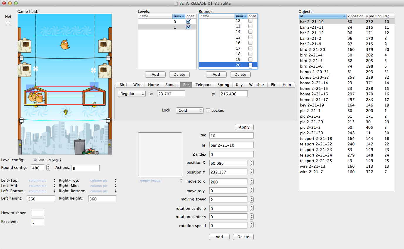 Для создания уровней был создан конструктор, который позволяет достаточно быстро собирать и редактировать уровни и раунды игры.