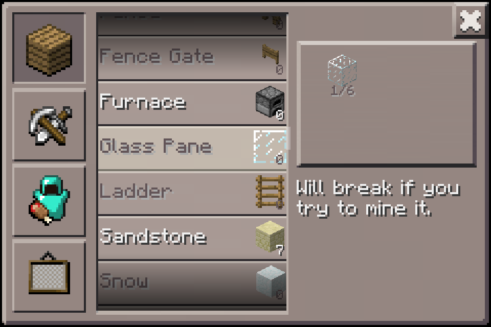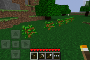 Ещё одно изменение — заплинги (они же ростки)! Они выпадают из листвы деревьев — так же как и в ПК — версии. У меня выпадало по одному ростку из одного дерева. Ещё в игру добавили тонкое стекло.