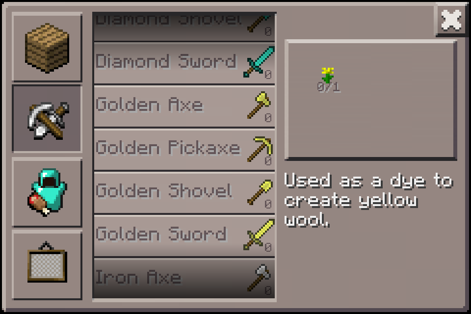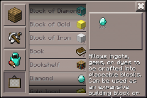 Если появилась печка, то просто не могли не появиться полезные ископаемые — золотая, алмазная и железная руды. Из них (переплавив) можно сделать инструменты или превратить их в блоки (для экономии места). В креатив мод добавили все вышеперечисленные руды + уголь. Лично я пока нашёл много железа, угля (его стало больше) и бесполезного редстоуна, который так и не хочет дропаться.