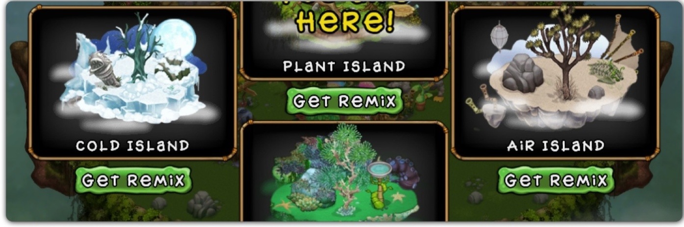 Отдельная тема касается островов — их тут 4. На каждом острове доступны новые виды монстров, а старые монстры поют по новому. Каждый остров разукрашен под определённую стихию (вода, воздух и т.д.) Также в iTunes Store (доступно только для USA) можно приобрести ремиксы мелодий с данных островов.