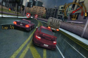 Модели машинок сделаны суперски: нет углов!!! Автомобили КОНЕЧНО же лицензированны! Все какие есть в игре, можно увидеть и в жизни. Всё плавно и ровно, ребята из EA постарались;) Здорово сделан асфальт, в смысле, что есть отражения (ну псевдо-отражения,это значит, что на асфальт нанесена картинка,она динамически не обновляется при движени,но выглядит очень красиво). Хотя правдивого отражения сделать думаю было нельзя, не хватило бы мощности Тача. Картинка летит быстро и плавно, так что движок не плохой, графа сама по себе симпатичная, для тача она ваще думаю 4.7 из 5…всё таки Девайс может выдавать картинку лучше, ведь запас FPS явно есть, на 2G точно…