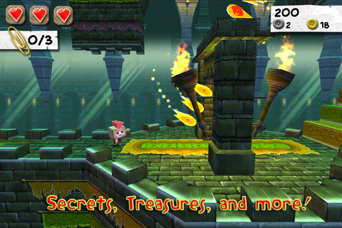 Нас ждут 16 огромных уровней, разделённых на 4 разнообразных мира, каждый из которых по своему уникален и неповторим. Нас ждут подводные и воздушные уровни, оригинальные и очаровательные персонажи, великолепный саундтрек. Кроме того в игре есть несколько типов управления, а также поддержка контроллера iCade.