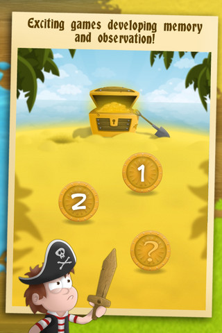 Приключения маленького пирата – это развивающее приложение для детей, которое будет полезно и родителям. В игре, маленький пират путешествует по островам, добывая сокровища. Каждый остров – это новые приключения и интересная мини-игра. И чтобы добыть сокровища – придется хорошенько напрячь мозги, потому как основным инструментом у вас будет выступать зрительная память.