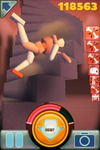 Как всегда в таких играх вам нужно в нужный момент нажать на кнопку, чтобы с определенной силой толкнуть манекена вниз по лестнице, в игре вы можете приближать определенные участки для более детального просмотра и делать скриншоты чтобы потом поделиться с друзьями. В конце вы получаете сумму баллов за каждое повреждение.