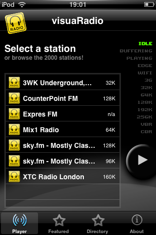 Программа VisuaRadio позволяет слушать интернет радио станции через WIFI. Очень много станций по категориям и визулизацией. Рекомендую