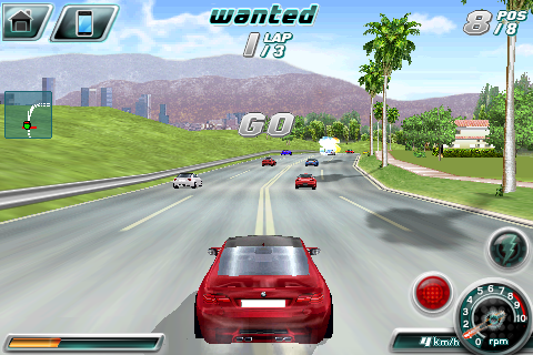 Asphalt 4 — красочные гонки на крутых тачках, здесь есть все от мешающегося транспорта, до погони полиции, управлять можно как спомощью акселерометра так и с помощью тач скрина