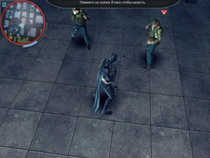 Отдельная тема — схватки со злодеями. С помощью всевозможных гаджетов мы сможем оглушать врагов и заставать их врасплох. Рукопашный бой конечно примитивен — в бою используется всего лишь одна кнопка. Также присутствует очень удобная кнопка бесшумного оглушения, если подойти к противнику вплотную или сзади.