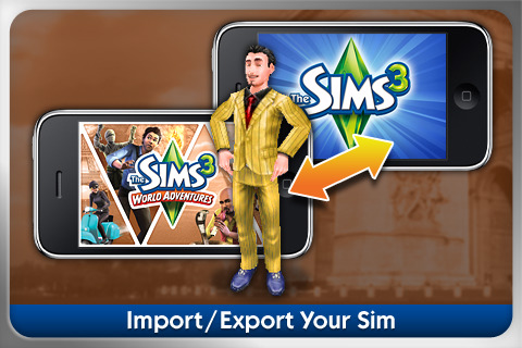 Ну конечно же World Adventures будет забита до ушей новыми шмотками, предметами домашнего интерьера, и новыми лицами (это видимо для внедрение в ряды людей живущих в перечисленых странах) для вашего сима при его создании, также все что вы преобрели в The Sims 3, вы можете перенести в эту игру, чтобы не терять свои достижения и вещи. Но круче всего, что вы можете переносить персонажа между обеими играми на вашем iPhone/iPod touch!