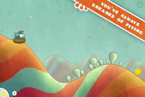 Управление в Tiny Wings очень простое и понятное. Когда вы касаетесь экрана, птичка прижимается к земле, набирает разгон на склоне, если отпустить палец, она будет подлетать на холмах. И опять же, если касаться экрана, она будет лететь вниз.