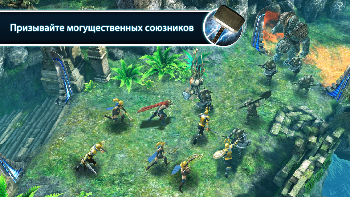— Откройте и улучшите 10 могущественных молотов и доспехов Тора