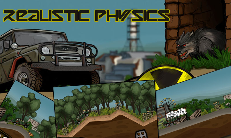 Игра представляет из себя автотриал в 2D стиле. Идея сделать сюжетную линию именно в “зоне отчуждения” пришла не сразу. Хотя лично я, был в 1986 году эвакуирован из города Припять. Да и нам хотелось чем-то выделиться, пусть и не сильно на фоне других игр. Как оказалось, среди нас есть фанаты S.T.A.L.K.E.Rа и как то само собой, мы решили проложить трассу именно через “зону отчуждения”. И как показала практика, вывод был сделан правильный. Мы сделали удар именно на “пост советский” стиль и технику. В игре можно проехать на всем известным нам ЗАЗ 698 – в народе именуемым как “запорожец” УАЗе, Зиле и советском танке Т-72.