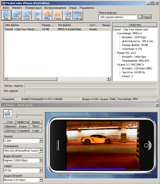 Конвертирую с помощью MediaCoder iPhone iPod Touch Edition