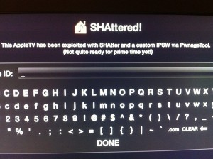 В след за jailbreak iPod Touch 4G, команда dev-team смогла через SHAtter, модифицировать прошивку Apple TV