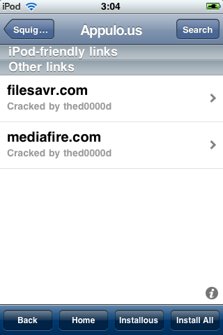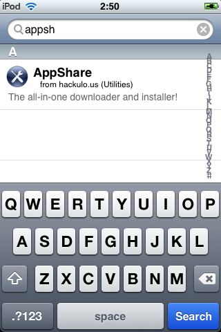 В Cydia появилась замечательная программа AppShare, которая позволяет без использования iTunes ставить программы на ваш плеер или телефон. Программа на самом деле представляет довольно удобный браузер по взломанным играм из AppStore. Программа состоит из двух частей: Браузер, качалки и установщика. И так приступим к установке…