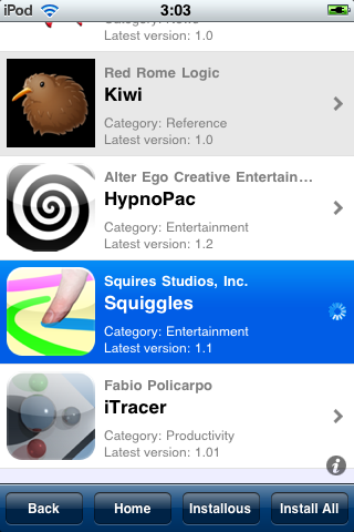 После того как скачалось, выходим из AppShare, запускаем Installous и через него ставим скачанную игру (программу)