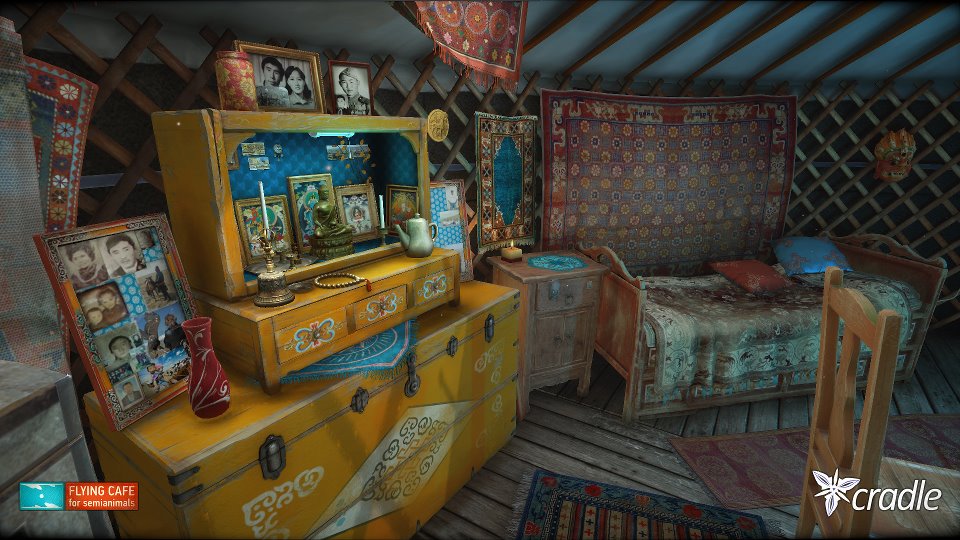 «Cradle» — научно-фантастический квест с видом от первого лица со свободным перемещением. В основе сюжета лежит история отношений главного героя и механической девушки, волей загадочных обстоятельств очутившихся вдвоём в юрте, посреди пустынных монгольских холмов. Задача игрока — восстановить утраченные функции механического тела своей спутницы, и вместе раскрыть тайну заброшенного парка развлечений, находящегося неподалёку от юрты. Этой весной игра выйдет для PC, а чуть позже для iOS и Android.