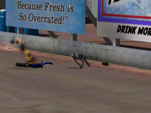 - Байк разваливается (при неудачных трюках/ столкновениях)
