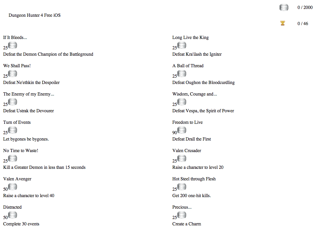 На форумах TA появилась ссылка на возможные достижения, которые можно открыть в процессе игры в Dungeon Hunter 4. Кто стал источником утечки, и была ли она или это всё спланировано заранее — на эти вопросы нет ответов, да и вряд ли когда-нибудь будут оглашены. Ознакомиться с ними можно .