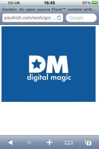 Тобиас Шнайдер (Tobias Schneider) построил среду исполнения Flash, работающую прямо в браузере, без дополнительных плагинов! Реализована на чистом JavaScript и HTML5. И работает на движке WebKit (Safari, Chrome) — соответственно на iPhone и iPod Touch!