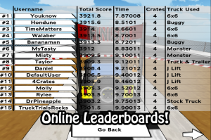 Hondune’s Truck Trials отличается от других гоночных игр. Здесь дело не в скорости, а в мастерстве, концентрации, и удаче. Цель — пройти все испытания, не выронив ящики (4 штуки). Каждый из них стоит 1000 очков, и чем больше вы доставите, тем большее количество очков получите. После прохождения каждого уровня вам открывается доступ к следующему и, возможно, к новой машине! Всего в игре доступно 40 уровней, которые поддерживают локальные и глобальные таблицы рекордов.