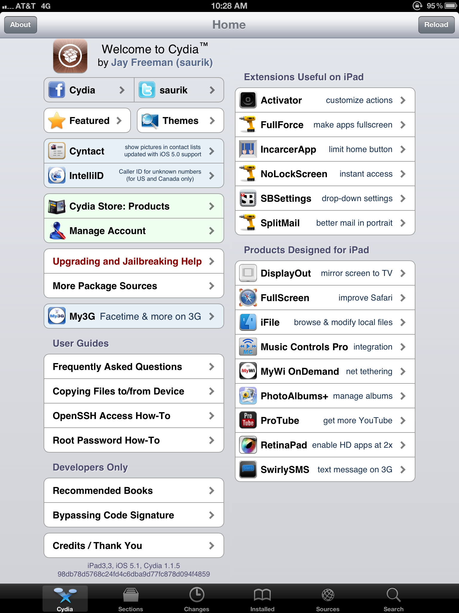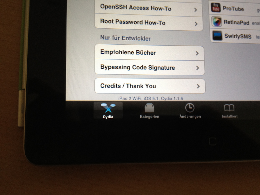 После чего MuscleNerd выкладывает скриншоты с новго iPad с установленной Cydia и работающим терминалом: