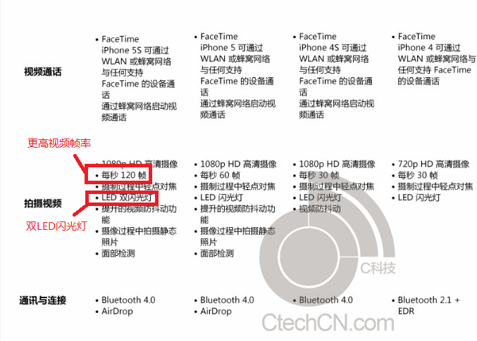 Сразу следует отметить, что подтвердились сообщения многих источников — у iPhone 5S действительно есть сканер отпечатков пальцев. Как и предполагалось ранее, новая модель основана на двухъядерном 32-нм процессоре A7 и оснащена таким же, как у iPhone 5, 4” экраном с разрешением 640×1136 точек и плотностью пикселей 326 ppi. Основная камера iPhone 5S с двойной светодиодной вспышкой имеет разрешение 8 Мп, но с большей светосилой f/2.0. Вдобавок, у основной камеры появилась функция поддержки записи видео с разрешением 1080p со скоростью 120 кадров/с.